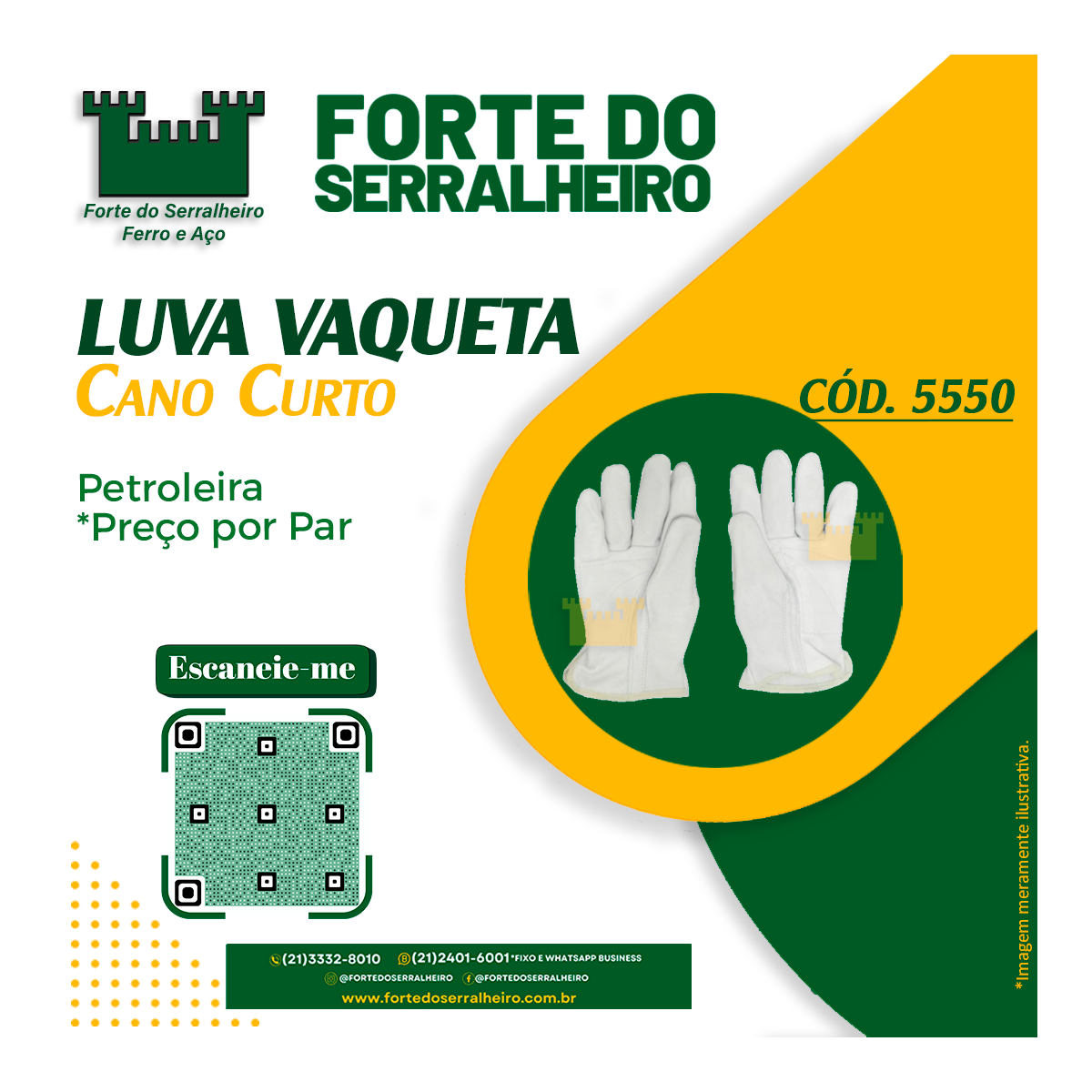Luva Vaqueta Petroleiro Cano Curto (Par)