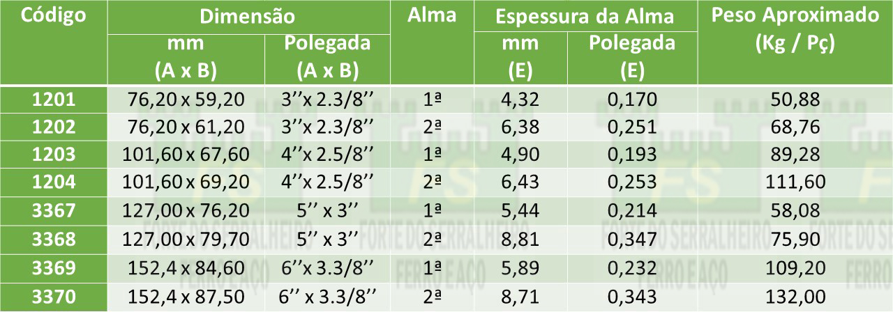 Fonte: Catálogo/site - ArcelorMittal/Gerdau/Web.