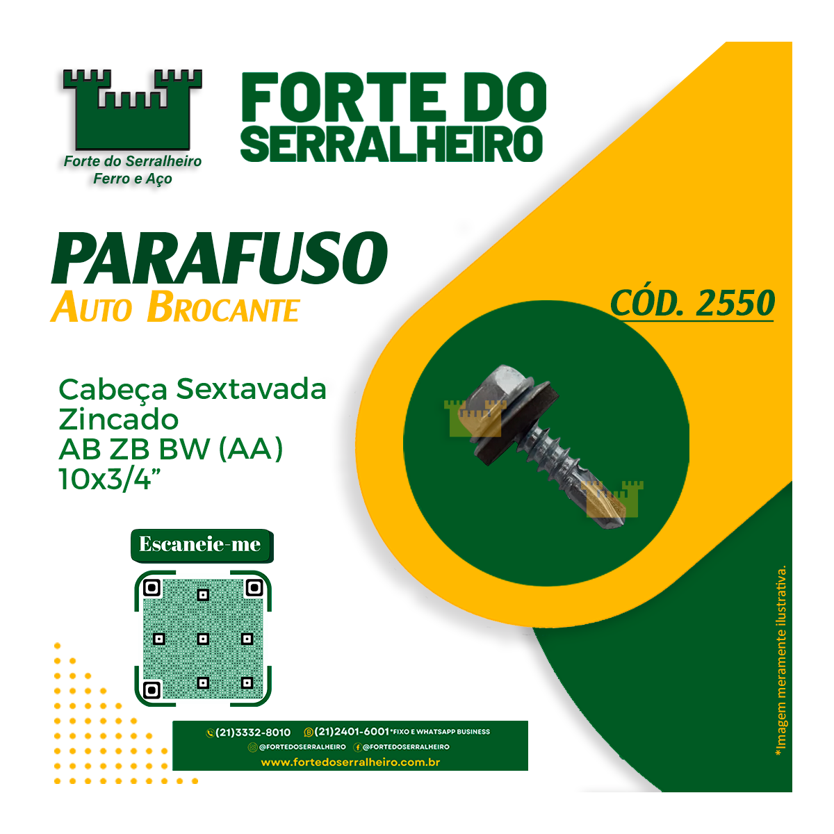Parafuso Auto Brocante Cabeça Sextavada Zincado: Parafuso AB ZB BW (AA) 10 x 3/4"