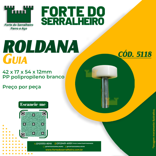 Roldana guia: Roldana guia 42 x 17 x 54 x 12mm PP branco