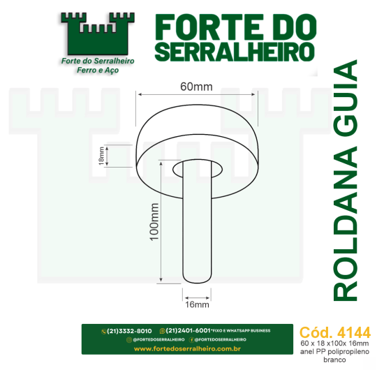 Roldana guia: Roldana guia 60 x 18 x100x 16 anel PP branco
